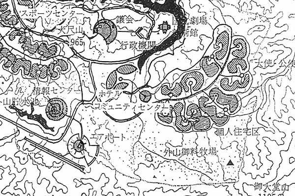 「21世紀遷都論」に描かれた未来都市の構想を説明していた時のことでした。広げられた地図は、近未来の日本の中心を描いた壮大な設計図です。「ここに皇居があって、裁判所や国会議事堂が移設される計画で……そして、ここに外山御料牧場があるんです。あれ?…」
