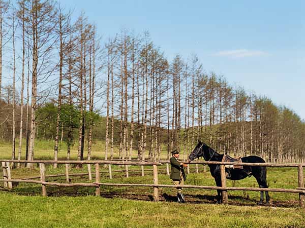 翌朝。かつて一條牧夫場長や新山莊輔場長や馬事関係者が馬で駆け抜けたであろう、小岩井農場から外山御料牧場への最短ルートを辿る撮影を開始しました。土曜日の小岩井農場は家族連れや観光客で溢れかえっていましたが、撮影コースを半日で回らなければならないため、私たちは先を急ぎます。滝沢の種畜場跡を抜け、石川啄木生誕の地・常光寺へ。そこで「バッタリ小屋」と思われる建物を撮影し、天峰山へ向かいました。