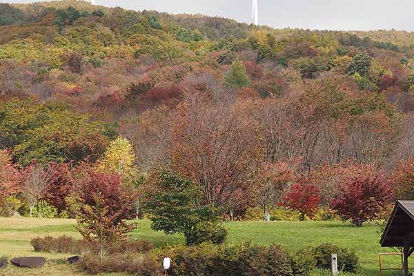 また、公園の隣にある姫神ウィンドパークでは、9基の巨大な風車がゆっくりと回っています。色鮮やかな紅葉と青い空、そして白い風車が織りなすユニークな風景は、ここでしか見られない特別なものです。