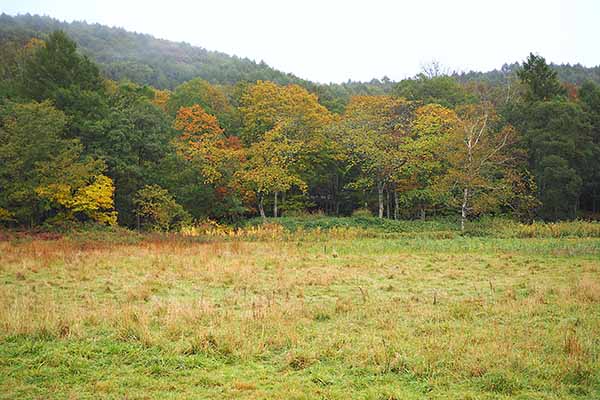 岩手山の麓、盛岡市郊外に広がる外山の玉山牧場は、知る人ぞ知る紅葉の美しいスポットです。秋が深まると、広大な牧草地の緑と、周囲の山々を彩る赤や黄色のコントラストが見事な風景を描き出します。